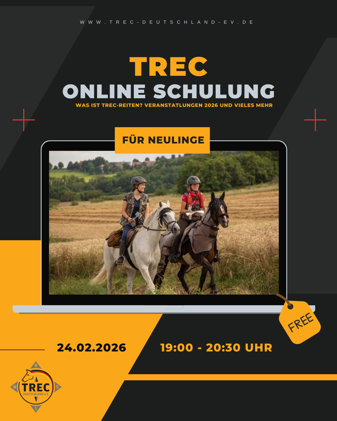 Wir laden dich herzlich ein zur Online-Schulung TREC-Reiten am 24.02.2026 von 19:00 – 20:30 Uhr – perfekt für Einsteiger und alle, die neugierig sind.