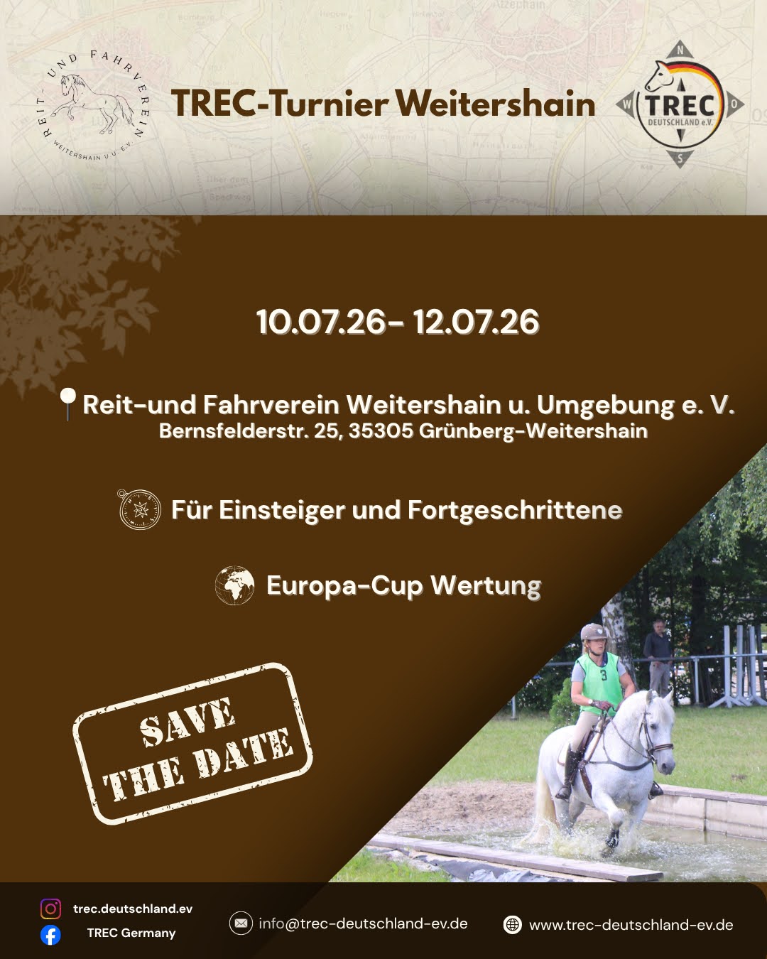 Vom 10.07.2026 – 12.07.2026 findet das TREC-Turnier in Weitershain statt. Speichert euch den Termin ab. Die Ausschreibung folgt noch.